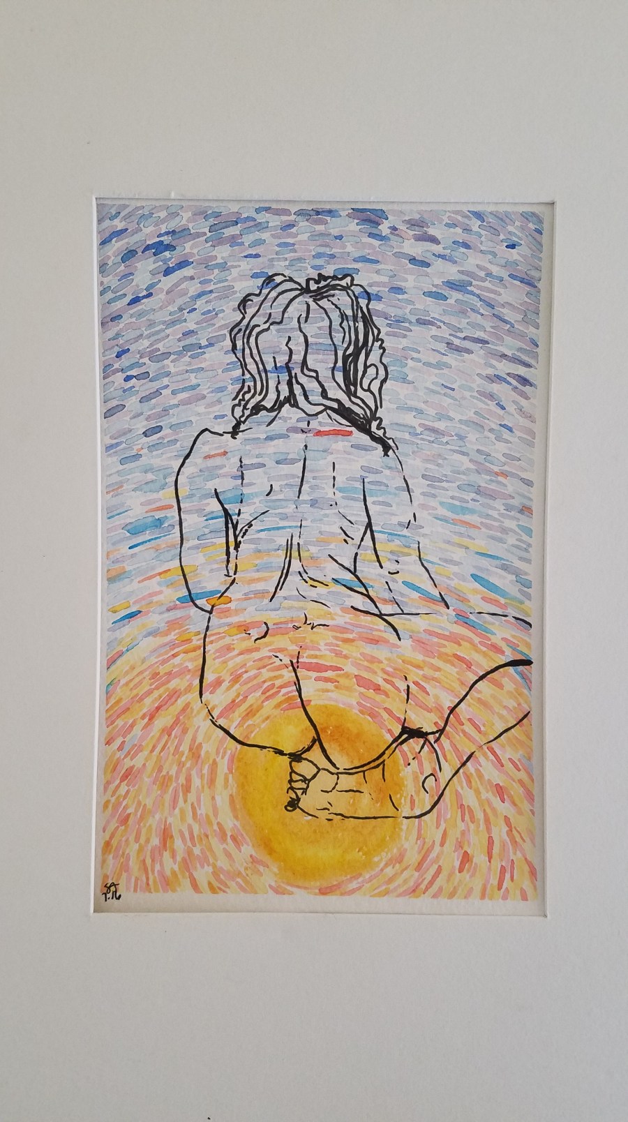 She runs in, screaming at the cold and flailing in the shallows. I walk in after her, past the breakers, and I glide around, doing my water dance, letting the ocean buoy and cradle me. I am chilly but at peace, I watch the water ripple through my fingers. This is the happiest I’ve been all day, and I am glad my mother is in the ocean with me. I look back at her.