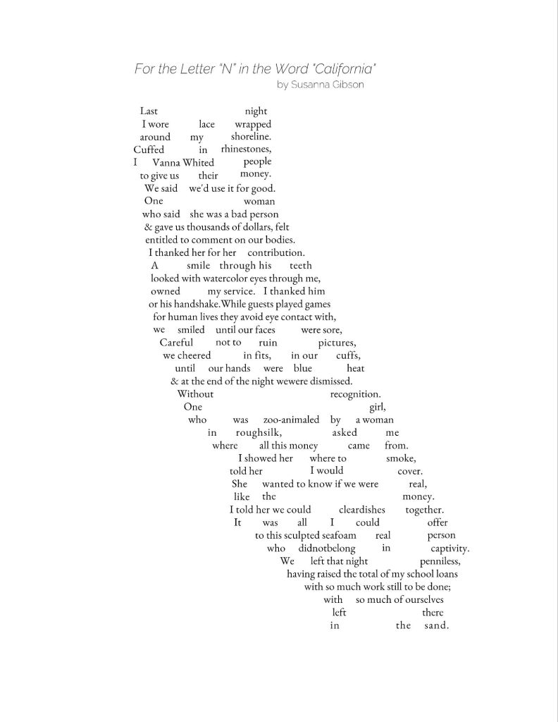 Link from Susanna Gibson’s book Homestead in Reverse for the poem “For the Letter ‘N’ in the word California”